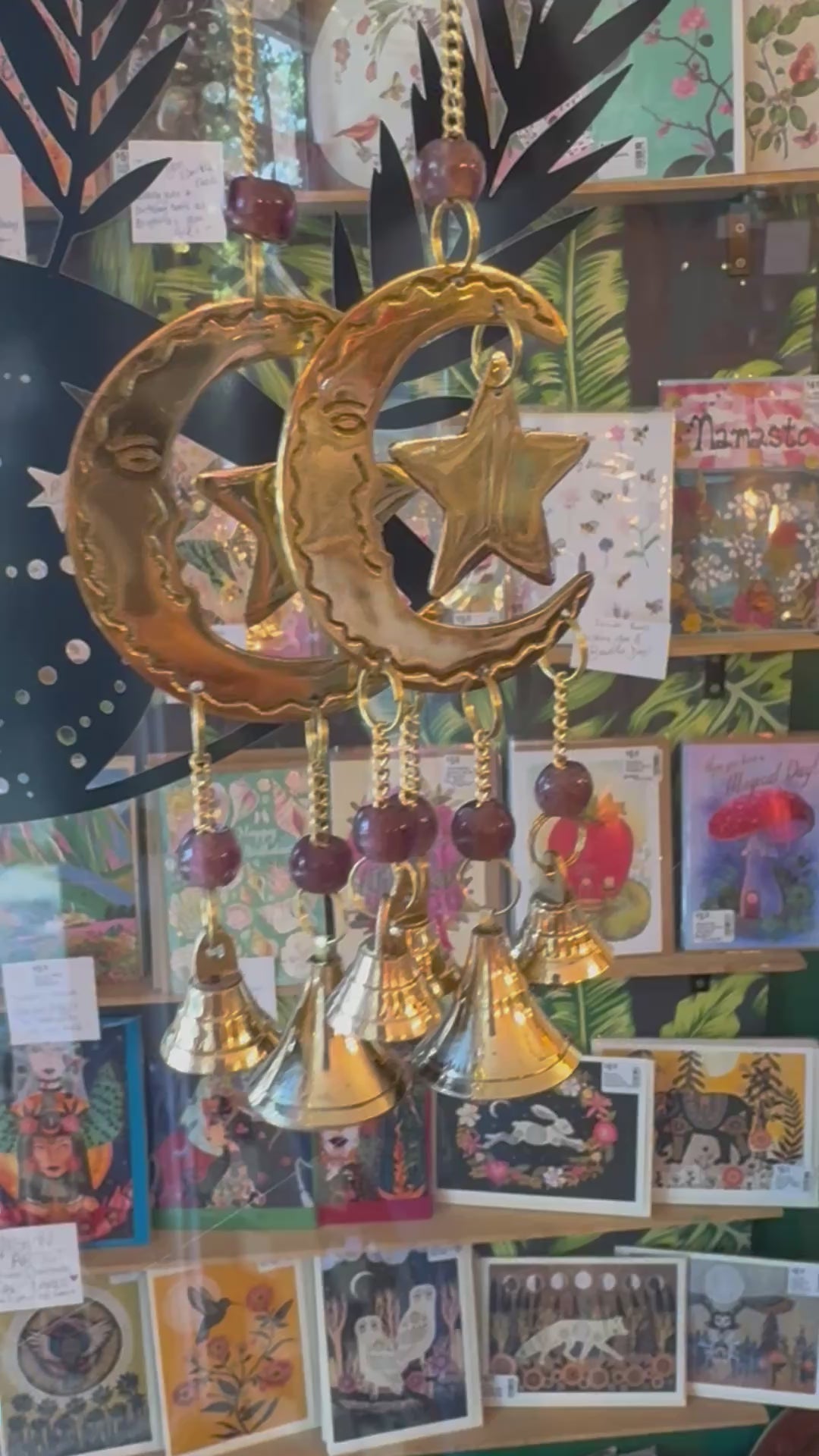 Moon Star in brass with beads and miniature brass bells - 9 inches long.