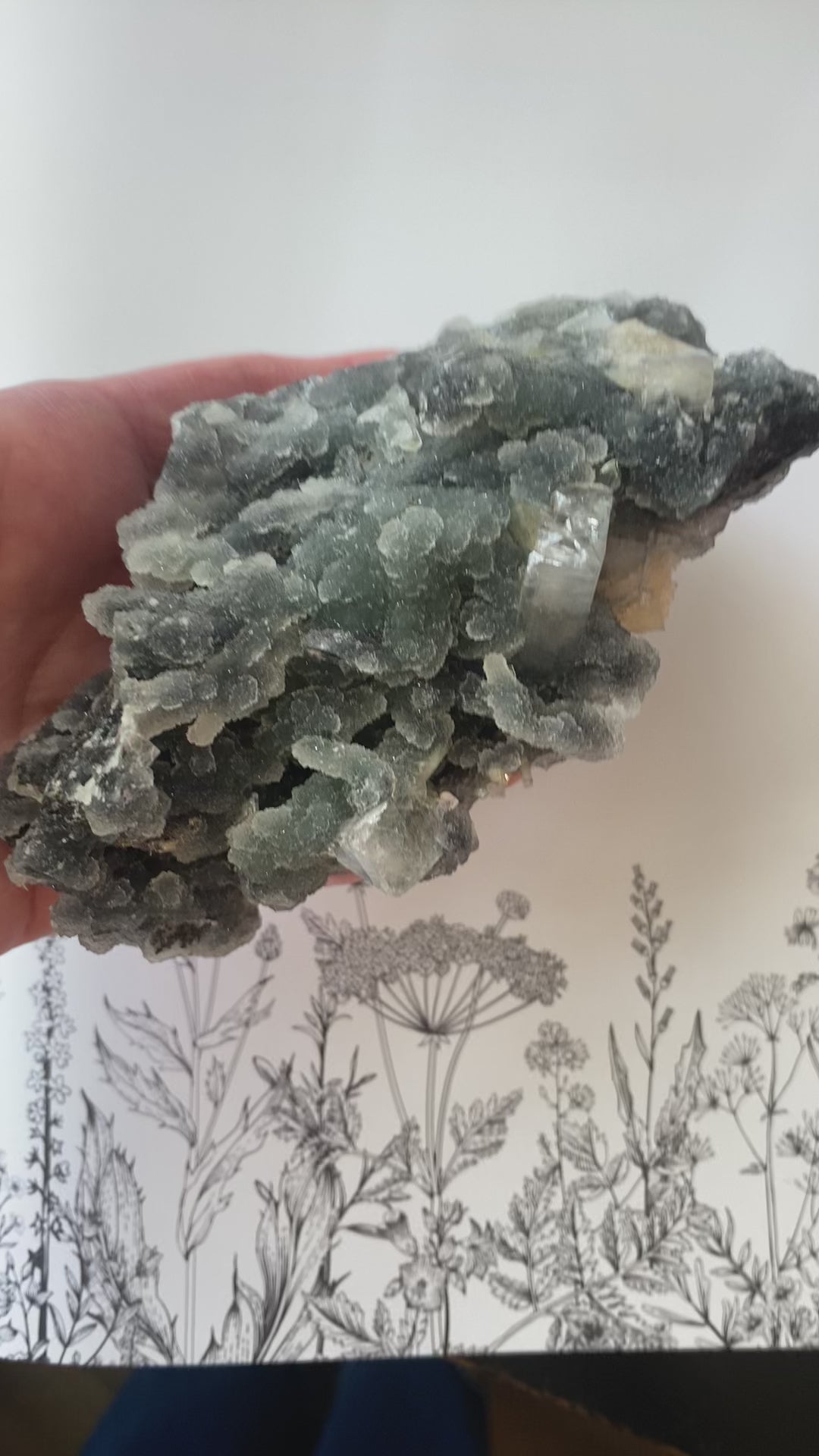 Enjoy the enchanting beauty of this Druzy Chalcedony with Apophyllite and Stilbite, a captivating natural formation that harmonizes stunning aesthetics with profound metaphysical properties. This exquisite specimen features a mesmerizing druzy chalcedony stalactite, adorned with sparkling apophyllite and delicate stilbite crystals, creating a visual symphony of color and texture.