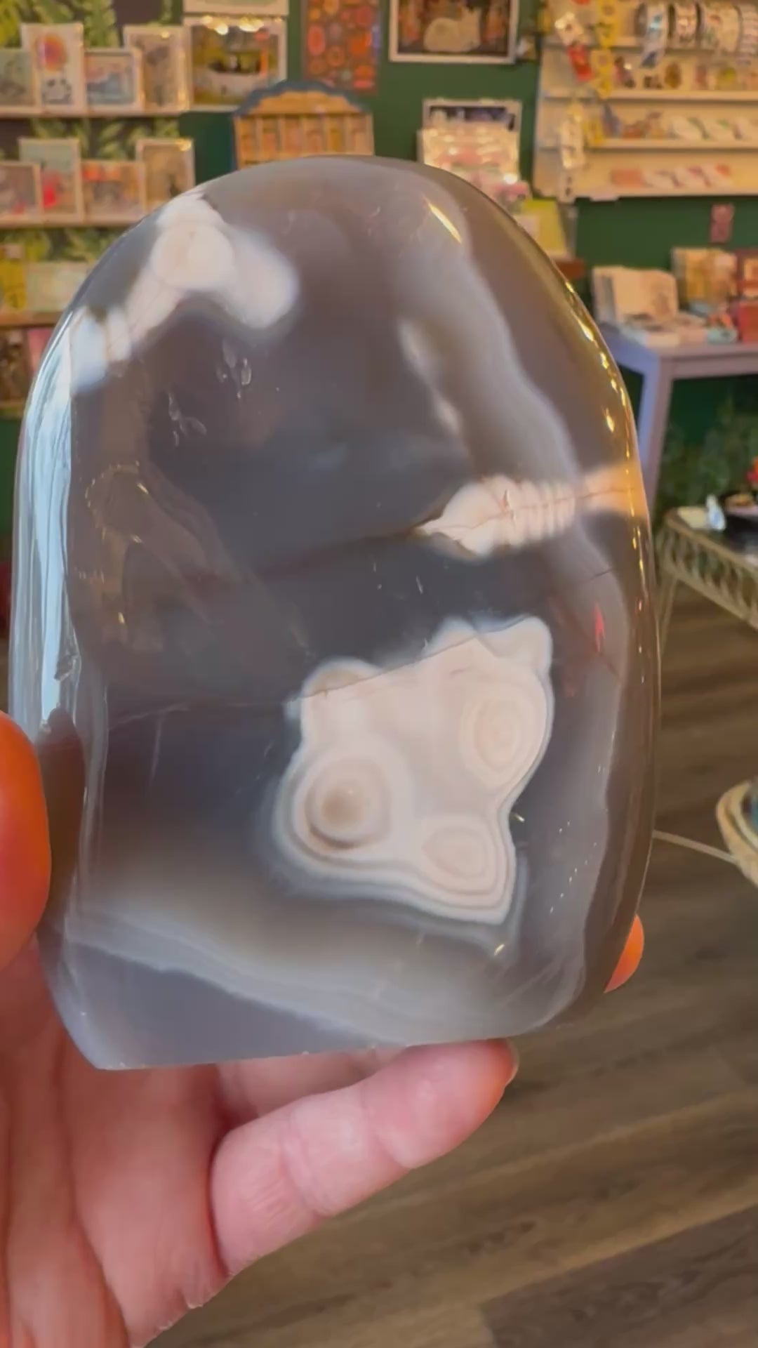 Metaphysically, Orca Agate is a stone of communication, inner truth, and emotional healing. It is believed to resonate strongly with the throat chakra, helping to release self-doubt, promote clear expression, and encourage authentic dialogue. Known as a “forgiveness stone,” it supports emotional release and encourages compassion—both toward oneself and others. Orca Agate also offers a calming, oceanic energy that soothes stress and anxiety, making it ideal for meditation or energy healing work.