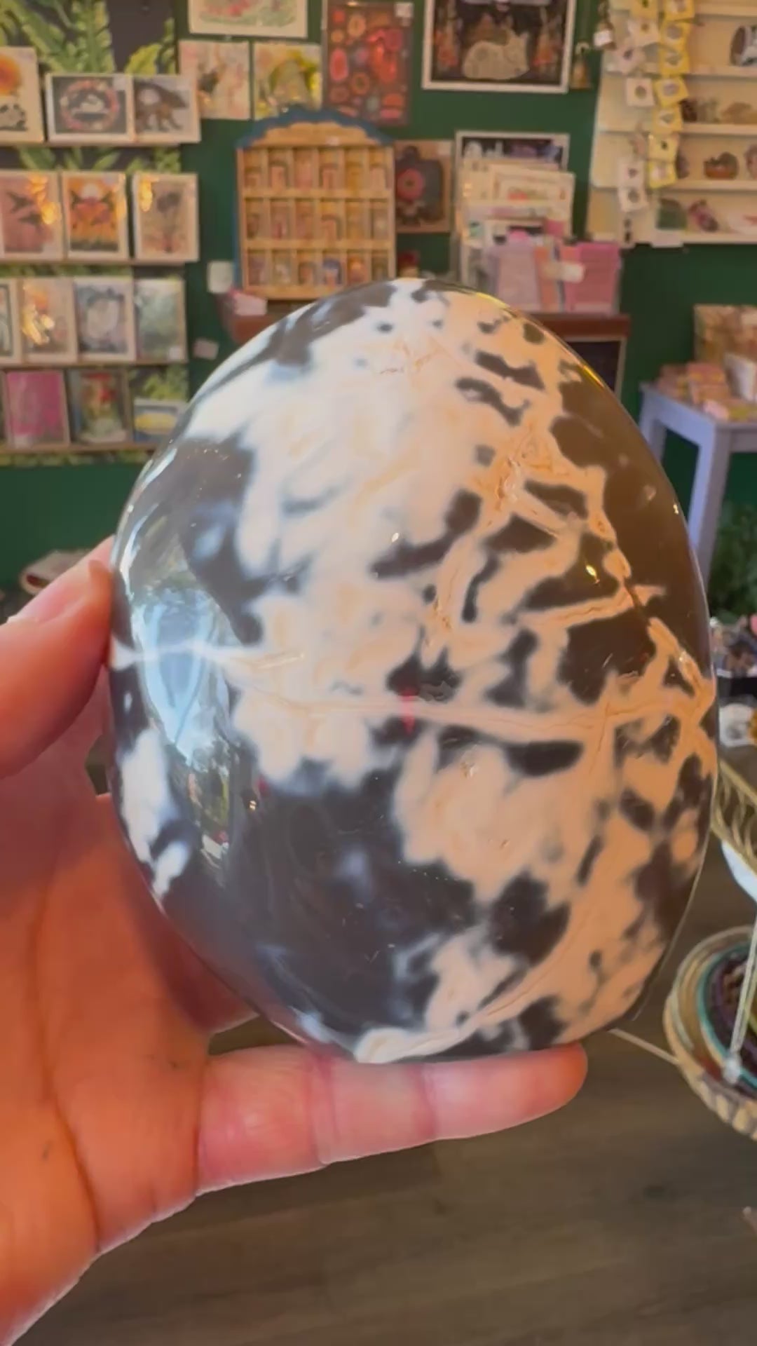 Metaphysically, Orca Agate is a stone of communication, inner truth, and emotional healing. It is believed to resonate strongly with the throat chakra, helping to release self-doubt, promote clear expression, and encourage authentic dialogue. Known as a “forgiveness stone,” it supports emotional release and encourages compassion—both toward oneself and others. Orca Agate also offers a calming, oceanic energy that soothes stress and anxiety, making it ideal for meditation or energy healing work.