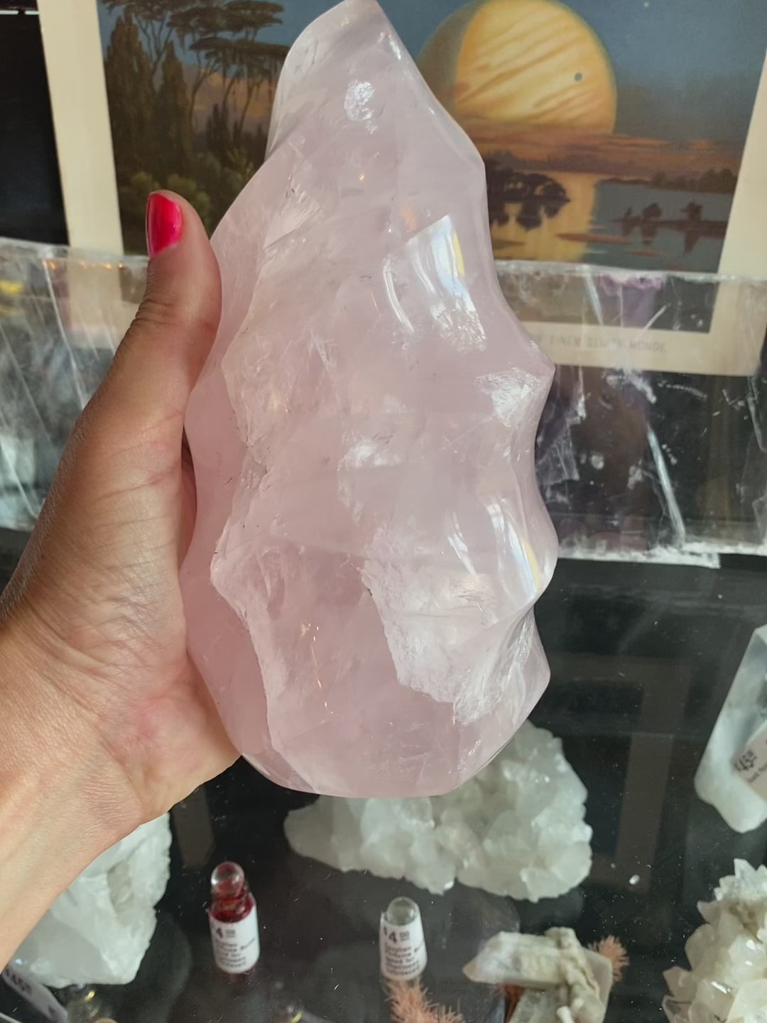 Rose quartz is not only a symbol of love but also a powerful tool for meditation and spiritual growth. Practitioners use it to release negative emotions, heal heartache, and balance emotional energy. Its presence in a room can create a serene atmosphere, making it a perfect addition to any home or sacred space.