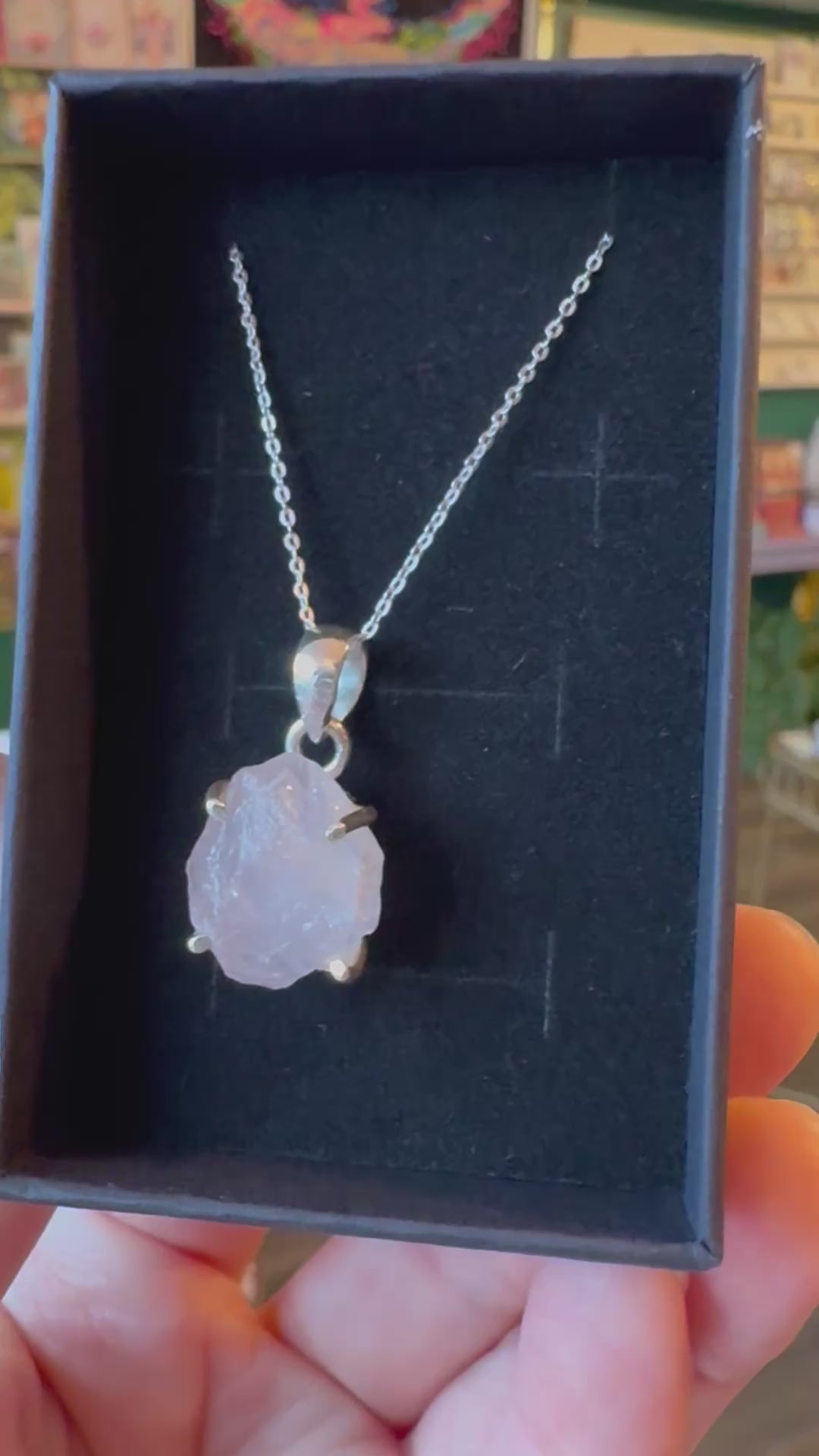 Rose Quartz Raw Sterling Silver Necklace 20 " Chain