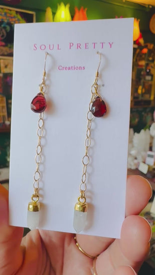 Soul Pretty Garnet Drops With Moonstone Gold Fill Earrings