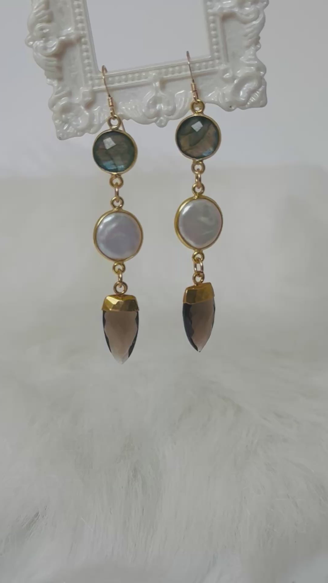Soul Pretty Labradorite + Pearl + Smoky Quartz Points Gold Fill Earrings