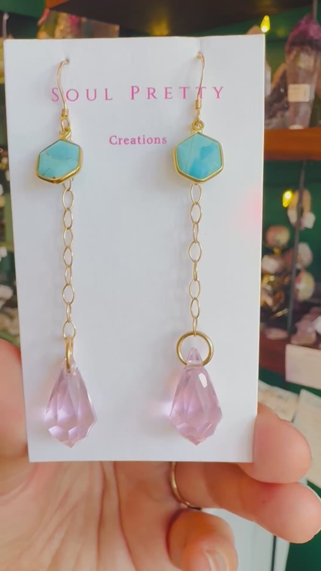 Soul Pretty Turquoise Hex + Pink Prism Point Gold Fill Earrings